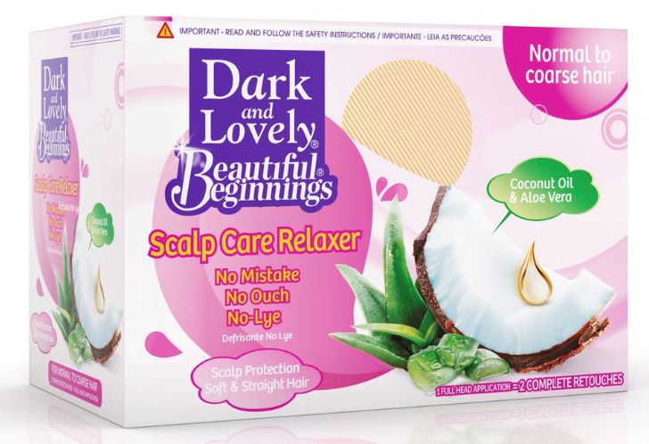 - Dark and Lovely Beautiful Beginnings Scalp Care No Lye Relaxer Kit Normal gently relaxes hair for straight silky hair.